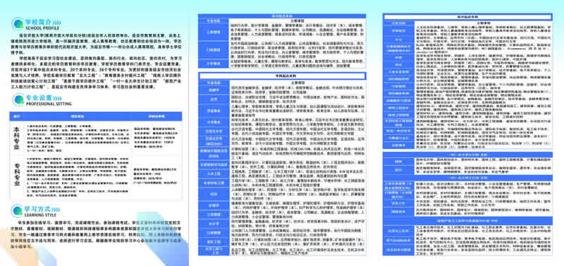 學校設置高起專、高起本、專升本、研究生(MBA)等多種學歷層次,開設管理、經(jīng)濟、教育、理工、建筑、石油、化工、醫(yī)藥、農(nóng)林等類60多個專業(yè)。