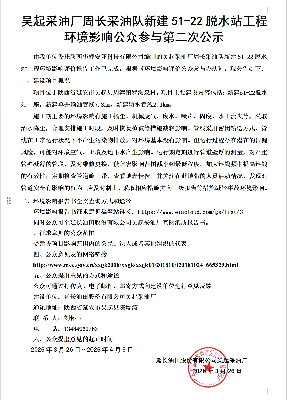 長慶油田分公司第一采油廠2025年老油田調(diào)整改造工程環(huán)境影響評價信息二次公示